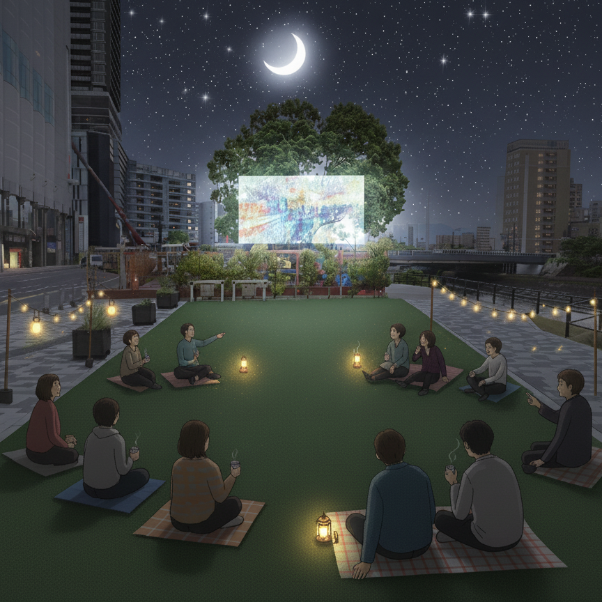 猿猴川沿いの広場が、川をもっと近くに感じられる日常の一コマを彩る舞台に大変身! 芝生の上で遊んだり、しゃべったり、寝転んだり、本を読んだり、焚火を囲んだり・・・。友達と、家族と、お子さまと、広島駅周辺の水辺空間で秋の連休を過ごしませんか?
